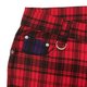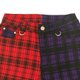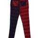左右两侧采用不同颜色格纹设计的窄管裤。