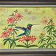 画家原创手绘水彩画 描述一只蜂鸟在花丛中