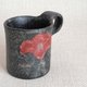 在沉静的黑釉上,鲜艳的深红色山茶花格外醒目,作品中能感受到日式美学与季节的气息。
