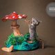 这只有趣的可爱小老鼠是用纱线编织而成,并以艺术颜料染色。它是可活动的,可以在金属丝骨架上变换各种姿势。所有手指也能弯曲。场景为森林空地搭配一朵毒蝇伞。小老鼠和这朵蘑菇在一起感觉非常惬意。 **我所有的作品都来自严禁吸菸的家中。 ***此作品不适合儿童玩耍。