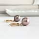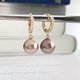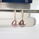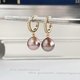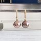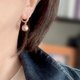 在垂坠式的圈形耳环上,镶嵌着小巧的立方氧化锆,并配上玫瑰金色泽、饱满且带有淡淡梨形状的天然珍珠。此为垂坠式设计。