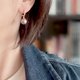圈形耳环上,纵向排列的立方氧化锆闪耀着钻石般的光芒,恰到好处地平衡了休闲感,显得十分高雅。