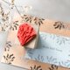 スターチスのスタンプです。 黒いインクで押してかっこよく。グレーのインクで柔らかく。縁取ったり、リースにしたり、使い方広がるスタンプです。 【台木サイズ】 縦3cm 横2.5cm 参考写真の茶色のカードはハガキサイズ、水色のカードは名刺サイズです。 【使用したインク】 いろもよう 銀鼠色 アートニック シルバー