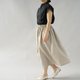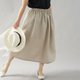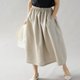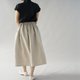 - こちらのスカート結構使えますよー!やや長めの丈でおしりゆったりのリネンスカート。ウエストはゴム仕様で簡単に脱着ができ、ふんわりとした大きすぎないボリューム感がとても使い勝手がいいです。