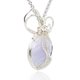 材质:天然蓝纹玛瑙,坠台为手工铜线编织台,项链为合金 尺寸:49x32x8.6mm 重量:18.8公克(含台链)