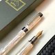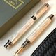 笔尖使用德国山羊BOCK#250(#6)玫瑰金钢尖,再经由老山羊职人手工专业打造成可写出粗细分明的毛笔字之书法尖,书写有回馈感,写出粗细更加有变化的汉字,写出自己独到的品味。另提供一般未改造之直尖可供选择(四种笔尖幅度EF.F.M.B),如果您的字迹较小或紧密,建议选用EF尖(极细)或F尖(细)。如果您书写较大文字或您正在寻找一支好用的签名钢笔,那么建议选用M尖(适中)或B尖(宽)。