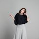 交叉的下摆有点像是鸟儿的羽翼,随着动作摇曳的时候,让衣服里的人显得自在可爱。但若是将其扎进下身,就变成了一件蝙蝠袖的上衣,没有不修边幅的率性,多了一点沈着的自信。