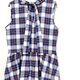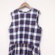 **【 背心绑带长洋装/ 宝蓝格纹 】**