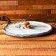 独特风格的陶盘,以无规则造型、白釉泛蓝釉呈现,经过高温烧制,可盛食物,亦可为家居收纳盘或装饰。