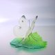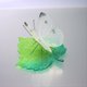 白い羽根が透き通るように美しいモンシロ蝶を、ガラスの葉っぱの上に乗せました。