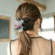 mini咲编发圈的发型设计 因为编织成花朵形状,手巧度不佳的人也没问题。只需轻松束发,瞬间就能完成设计感造型! ・单束发绕两圈。花朵会轻巧地停留在头顶。 ・扭转发型绕两圈。花朵从蓬松的发流中探出头来。 ・三股辫的末端。 ・半束发造型。 ・戴在手腕上当作手环感觉。 重量轻盈,小朋友也可以使用!欢迎母女一起享受。有各种乐趣,Youtube和Instagram也有造型提案!