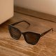 这款太阳眼镜以坚固的猫眼型镜框和方形的镜片为特色