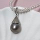 这颗最小直径13.3mm的近正圆大溪地黑珍珠呈现出难以掩盖的光芒,默默的绽放着低调的优雅,表面的镜面光可以将你的影像反射出来,虽有微瑕为生长纹(如图6所示)却瑕不掩瑜,难以掩盖光彩。纱织小姐为其配置了满镶嵌晶体锆石的万能扣配件,可以适配你的任何一件链条(建议搭配主图中与之搭配的baby珍珠项链)。纱织小姐会赠送您一条银链子。把她佩在颈间,自成风景,美得不可方物。