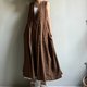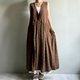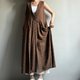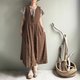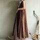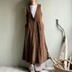 悠然湖滨/棕色缇花纯棉交襟V领开扣背心裙长版洋装/长罩衫100棉