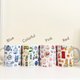 这个马克杯系列有蓝色、红色、彩色和粉红色四种款式。