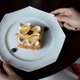 吉田健宗先生的作品包括八角形的"八角器系列"和带有和纹的六角盘。"八角"在法语中意为"octogonal"。他的作品以简洁的设计为特点,为了使法国古董器皿在现代家庭中更加实用,他进行了整体轻量化和减少底座的改进。这些作品不仅使用方便,而且设计简洁,散发着高级感。