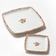 日本京都Tachikichi橘吉,1752年创立,和式陶瓷方形餐盘,赤绘菊花图案,一组 6 件 ( 1 大 5小 ) 不拆卖,中古品,状况如新,图案精细,色彩漂亮,大盘直径27厘米,高2厘米 ,小盘直径16厘米,高2厘米。
