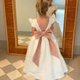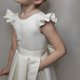 轻便的连衣裙不会限制行动。 背面有漂亮的领口,连衣裙用拉链扣紧,调节在腰带上,饰有大蝴蝶结(腰带的颜色可以根据您的意愿不同)。