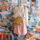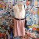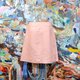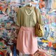 **中古棉质豆沙粉红色蝴蝶结腰头A字及膝裙 日本文青高贵优雅古着**