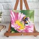 这幅描绘熊蜂的小型油画,绘制于 15/15 厘米的硬纸板画布上。这幅色彩鲜艳的原创熊蜂油画将为您的居家空间增添亮点,亦可成为赠予挚爱的难忘礼物。