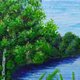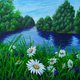 这幅画作倾注了我的心血,注重每一个细节,诚邀您驻足片刻,远离城市的喧嚣。我试图捕捉夏日里转瞬即逝的美好瞬间:空气中弥漫着河水的清新气息,四周一片宁静祥和,阳光在河岸的弯道上跳跃闪烁,唯有在静谧的时刻才能看到这般景象。每一朵雏菊、每一根草叶、每一棵树木,都是我亲手绘制,散发着纯净与质朴的气息,将您的家变成一片舒适与光明的绿洲。