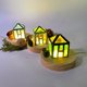 材料 彩色玻璃利用玻璃镶嵌方法,铜箔包边,加上焊锡,就如教堂玻璃般艳丽。 设计师为每个小屋子配上干果子作点缀。 配上USB LED灯座 小屋子大约尺寸 4.5cm x4.5cm x8cm 灯座尺寸 直径10cm x 高2cm