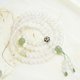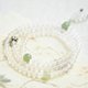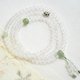 荔枝冻色调清新典雅,色白冰润,给人很纯洁美好,像清晨的露珠一样干净剔透,搭配大颗荔枝冻圆珠,搭配天然和田玉晴水圆珠和晴水三通佛头,点缀925银莲花隔珠,搭配六颗弟子珠。