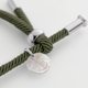 •手绳物料:再生聚酯纤维 •金属扣物料:不锈钢 •手绳颜色:橄榄绿色 •金属扣颜色:银色 请注意,如须延长饰物的寿命,请避免和水接触 手绳全长23.5cm,可调整尺寸至适合手围19cm或以下