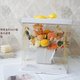 **花材|**主花为1朵永生玫瑰+3朵扩香索拉花,配花含不凋绣球花与其他季节性花材与叶材