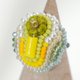 おゃべりな指輪109 フリーサイズ ビーズ刺繍のリング フラワー イエロー おおぶりリング