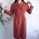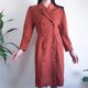 复古 1980 年代棕色豌豆大衣连衣裙,双排扣泡泡袖连衣裙,长袖连衣裙,豌豆大衣连衣裙款式