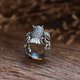 猫头鹰花羽毛环银动物玫瑰鸟 - 戒指 - 其他金属 银色
