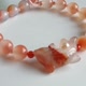 有明显朱砂点和草花与天然纹理的天然冰飘南红锦鲤,冰透的荔枝冻底,精雕锦鲤雕做鱼游水波的形态,波浪间锦鲤卷起一颗小珍珠跃然其上,如图卷起的月光。锦鲤有祈福挡灾,好运连连的寓意。天然绯红玛瑙聚宝盆体做手串主体珠子手工编绳制作连接,一半粉嫩一半橙艳的蜜桃色,皆是半盆的形态,聚财聚运聚福,搭配天然南红樱桃红小圆珠与红玛瑙小圆珠,粉润明艳,飘逸蹁跹,精致灵动,典雅可爱。