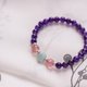 手串主材质:紫水晶6mm圆珠、草莓晶8mm圆珠,天河石圆片,925银