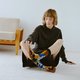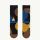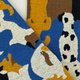 优美地融入深棕色、芥末黄和鲜艳蓝色的背景中。