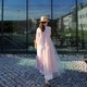 上身后,右侧裙摆和左侧袖子的纱纱交相呼应
