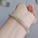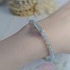 •色是很清爽、仙气的莫蓝迪马卡龙色系,使用的是白绳,可改有色绳,色会更浓,配件全部都是纯银,中间是灯管翡翠万用台,戴腻了还能拆下来换珠串或当戒链...多用途,超实用!