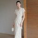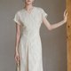 - 【亚麻人丝】新中式复古中国风 植物染剪花/修身长裙