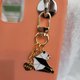 熊猫基岭,眼神温暖。 如果放在包包或手机上的话,会是个整齐又可爱的点。 Ming Ming Moru钥匙圈是由艺术家将多个吊坠和肩带组合而成的。 预防措施 拉动钥匙圈可能会造成损坏。
