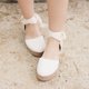 Smooth canvas sandals with ribbon ties wrap around the ankle. High quality material and comfortable platform.
