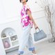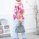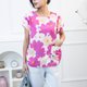 桃红花朵口袋短袖上衣 / 白底 透气舒适,夏秋皆宜