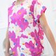 桃红花朵口袋短袖上衣 白底