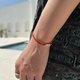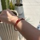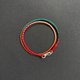 手绳线材是混色系,这款以红色以及橙色深浅为主色,小部份为绿色,手工编织出来的每一条手绳都是不一样的颜色渐变顺序。