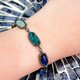 手链整体以镀黑铬金属为基底,镶嵌6种冷色调玻璃宝石,闪烁着如夜空般深邃又冷冽的光芒。每一颗宝石仿佛蕴含占卜与祝福的能量,为佩戴者带来力量与守护。冷酷而不失优雅,这件珠宝适合独立灵魂,也为你的哥德风、神秘系或个性穿搭点缀出不可忽视的存在感。让黑夜成为你的舞台,让黑卡蒂为你守护前行的路。