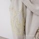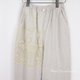 选用自然的生成色 100% 亚麻布料,在单侧缀以精致的“网纱玫瑰刺绣蕾丝”。蕾丝的花瓣轮廓清晰立体,宛如花环般的弧形设计沿着腿部线条流动,呈现出令人屏息的优雅美感。