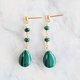 天然宝石耳环 孔雀石