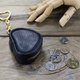 以黑色植鞣牛革制作成<爱心形状>也似<黑桃>的置物袋。可以收纳AirPods,也可以当零钱包或放置小物。搭配爱心造型的钥匙圈,两颗心连系再一起,就像恋爱般,噗通噗通的跳。不管是黑心或是黑桃,绝对是吸引目光与爱不释手的皮革小物。