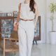 春季修身裤,麻裤,米色