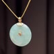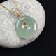 【名称】冰飘绿花翡翠平安扣18K金项链