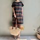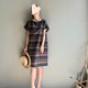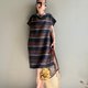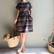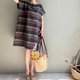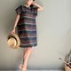 罗马之夜/黑巧克力配色宽条纹意大利制亚麻短袖小洋装100%亚麻/附同布料绑带(随机配色)